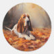Adesivo Redondo Caça-Basset nas Folhas do Outono Cai Inspire