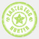 A caça ao ovo na Páscoa é um negócio sério. Vista um grande adesivo para garantir que todos fiquem fora do seu caminho enquanto você está indo atrás de sua caça. É a versão Páscoa do crachá de um xerife! Adicione um nome/algum texto no início do centro, se quiser. Também disponível com uma dispersão de estrelas na design, bem como em diferentes cores e em diferentes produtos. Você pode comprar uma mistura de cores e ainda obter um desconto de quantidade.