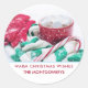 Um adesivo festivo com uma fotografia de Natal confortável e quente. Uma xícara quente de cacau com marshmallow numa caneca de bolinhas branca e vermelha. Uma cana-de-açúcar listrada descansando sobre um cachecol verde e listrado branco coberto de neve. Uma bebida quente depois de entrar do frio realmente atinge o ponto. Uma foto festiva de férias. Quantos de Natal Quentes são escritos com uma letra moderna simples mas clássica. Personalize com seu nome.