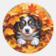 Adesivo Redondo Cachorrinho Fofo em Folhas de Outono
