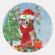 Adesivo Redondo Cachorro Australiano no Natal da Neve