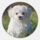 Adesivo Redondo Cachorro branco branco liso Maltês Cachorro