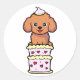 Adesivo Redondo Cachorro castanho engraçado pulando de um bolo
