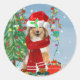 Adesivo Redondo Cachorro Collie em neve presente de Natal