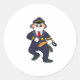 Adesivo Redondo Cachorro como agente da polícia com uniforme da po