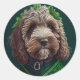 Adesivo Redondo Cachorro de Cockapoo na Rua.