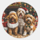 Adesivo Redondo Cachorro de Goldendoodle de Natal