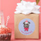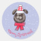 Adesivo Redondo Cachorro de Natal vestindo boné e cachecol de malh