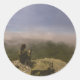 Adesivo Redondo Cachorro e mulher num Bluff Rocky