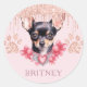 Adesivo Redondo Cachorro Elegante Personalizado de Chihuahua com G