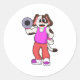 Adesivo Redondo Cachorro em Bodybuilding com Dumbbell
