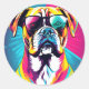 Adesivo Redondo Cachorro Energetico Com Óculos Solares Pop