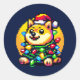 Adesivo Redondo Cachorro Festivo - Luzes de Natal de Pixel Bonito