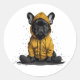 Adesivo Redondo Cachorro francês bonito Vestindo capa-de-chuva