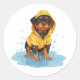 Adesivo Redondo Cachorro giratório Vestindo capa de chuva