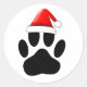 Adesivo Redondo Cachorro Pawprint Santas Hat