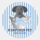 Cãozinho bonito numa pilha tomando banho. Os Design azuis são uma excelente maneira de anunciar a sua empresa sobre as faturas e o correio. Adicione este adesivo bonito a todos os recebimentos pagos. Seu cliente terá seu número de negócios por perto.