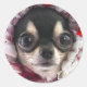 Adesivo Redondo Cachorro preto e bonito, cara de Chihuahua