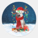 Adesivo Redondo Cachorro Siberiano Husky com presentes de Natal