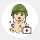 Adesivo Redondo Cachorro-Tronco Vestindo capacete do exército