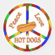 Um amante de cachorro-quente vai desfrutar desse sinal de paz colorido com um cachorro-quente e as palavras - Cães-Quentes de Amor pela Paz.