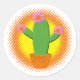 Adesivo Redondo Cactus De Cartoon Gelado Com Flores Rosa