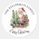 Add a festive touch to your holiday season with this playful round sticker featuring a whimsical watercolor Santa Claus surrounded by green cacti and succulents in the center. The name curves along the top edge, while “Merry Christmas” appears at the bottom for a cheerful finish.