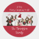 Para os Dog Lovers e aqueles que adoram rir! Um adesivo redondo engraçado com texto: Um Feliz Natal Para Todos, e seu nome de família. Projetado com 5 cachorros giros vestindo narizes vermelhos festivos e Reindeer Antlers. Para personalizar, basta inserir seu nome de família em nosso modelo fácil, substituindo o texto de exemplo. Excelente para mensagens de cartões de Natal, pacotes ou em qualquer lugar. Aproveite!