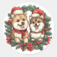 Adesivo Redondo Cães Pomeranianos Mistletoe Wreath