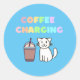 É o Café e Gato para o Café Lover Classic Round Sticker. A tipografia do arco-íris e o café, gatos brancos são tão adoráveis. É um presente alegre para o amante da cafeína. Comprar agora!