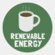 Vá verde e tome sua cafeína também. Este gráfico simples e engraçado mostra a fonte de energia mais renovável, sustentável e ambientalmente amigável de todos - uma xícara de café! A caneca de café branca fica sobre o texto branco que diz, "Energia Renovável." Faz uma declaração humorística para o seu ambientalista favorito!
