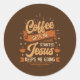 Adesivo Redondo Café Me Inicia Jesus Me Mantém Indo