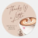 Adesivo Redondo Clássico de Obrigada Uma Dose para Chá de Noiva de Café Moderno