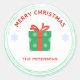 Adesivo Redondo Caixa de presentes de texto vermelho de Natal feli