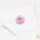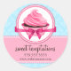 © 2012 Designs socialitas. Nossas juntas/adesivos de padaria de cupcake têm um cupcake elegante com fita e arco, flores e espirais dentro círculo de rendas. O fundo tem uma cor damasco sutil.