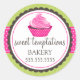 © 2013 Designs socialitas. Nosso elegante adesivo de padaria de cupcake tem um dentro de cupcake gourmet com um lugar / círculo redimensionado. A design também tem uma fita cor-de-rosa fuchsia vibrante com pontos polca. Uma design maravilhosa para usar como selos em caixas de padaria ou para selar bolsas favoráveis para festas.