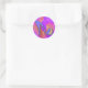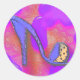 Adesivo Redondo calçado roxo sobre fundo rosa e roxo