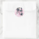 calçados de balé bonito para sua pequena bailarina, acentuados com flores e miçangas. Um fundo de faixa rosa e branca completa o conjunto.