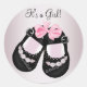 Adesivo Redondo Calçados para bebês pretos Chás de fraldas rosa