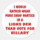 © WhiteTigerLLC.com facebook.com/White.Tiger.LLC Eu Vestiria As Calças De Corte De Porco Em Leões Den Do Que Votaria Na Hillary