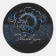 Pegatina en forma redonda do que pega especial para ocasionalmente y celebraciones hecha con textura negra y rosas con purina de cor azul Puedes usarla para un envío especial.