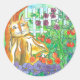 Adesivo Redondo Calico Cat Vegetal Garden Watercolor Painting