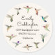 Este adesivo bonito apresenta algumas das espécies mais comuns de beija-flores que podem ser encontradas na Califórnia, como os beija-flores de Anna, Allen, Black-chinned, Costa's, Broad-tail, Calliope, Rufous e Broad Hummingbird. O estilo da fonte, o tamanho da fonte e a cor podem ser alterados clicando em "personalizar mais". Todas as imagens de aves são tiradas de aquarelas originais por Christiane Dobbins.