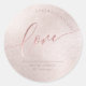 Adesivo Redondo Caligrafia Amor Rosa Bege Folha de Ouro Falso