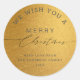 Adesivo Redondo Caligrafia Chic Folheado a Ouro de Luxo Feliz Natal