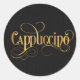 Adesivo Redondo Caligrafia com Script Suave Dourada em Preto