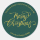Adicione um toque polido e festivo às suas correspondências de Natal com este adesivo redondo de Natal Feliz, letra à mão em dourado e verde. Perfeito para selar envelopes, etiquetar presentes ou personalizar pacotes.