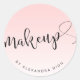 Design de autocolante de maquiagem minimalista elegante que apresenta seu nome e texto de maquiagem em uma moderna letra manuscrita de script, fundo de rosa claro gradiente.