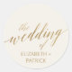 Estas elegantes juntas de marfim de vitória para caligrafia em ouro são perfeitas para um casamento simples. A design neutra apresenta um adesivo minimalista decorado com tipografia falsa de ouro romântica e caprichosa. Personalize o rótulo com os nomes da noiva e do noivo. Nota: Este design não apresenta folha de ouro real. É um gráfico de alta qualidade feito para se parecer com folhas de ouro.