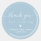 NewParkLane - Adesivos personalizados sofisticados, com uma citação 'Obrigado' em tipografia cursiva elegante / caligrafia com espirais, um coração minúsculo fofo e uma moldura redonda pontilhada, contra um fundo azul bebê suave.